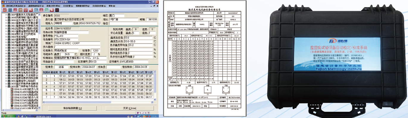 *自动检定系统软件由长期从事环境试验设备现场校准的高级工程师开发,符合现场校准习惯,方便解决现场校准遇到的问题。该系统支持40条彩色实时曲线,直观反映被测对象的温度、湿度的波动。系统自动计算温度、湿度的均匀度和波动度,生成符合国家实验室认可要求的原始记录,用户可以自行设计原始记录、检定/校准证书模板,生成原始记录和证书。系统软件可同时对两台被校设备进行检测,节约宝贵的现场检测时间。系统具有超强的数据库管理功能,保存历年的检测数据。周期检测无须输入样品信息,即可进行自动检测。